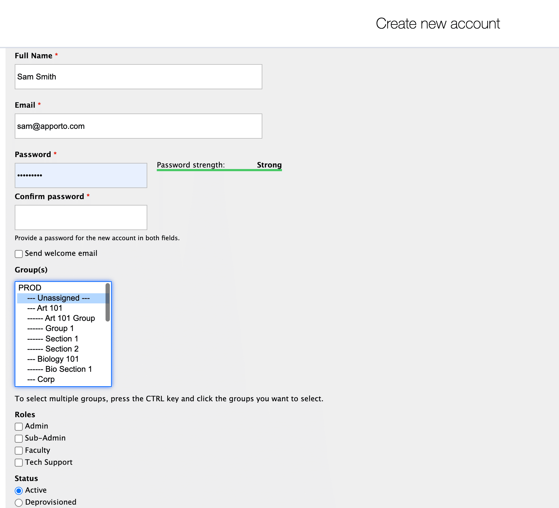 Use the Groups menu to select the group(s) to which the user will be assigned.