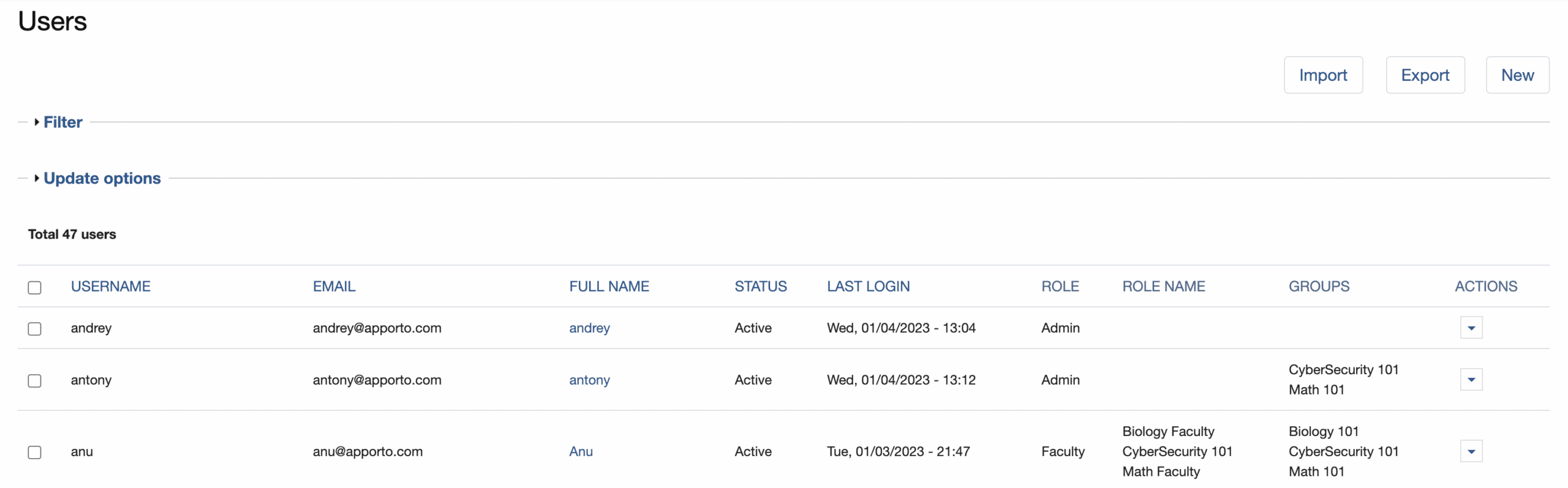 In most cases, new users are added to Apporto when they login via single sign-on (SSO). If you do not have an SSO integration with Apporto, you may create accounts for new users manually or by importing users from a CSV file.