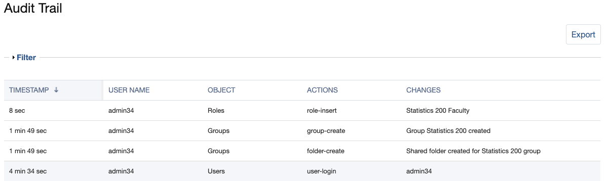 You can search and filter data in the Audit Trail.