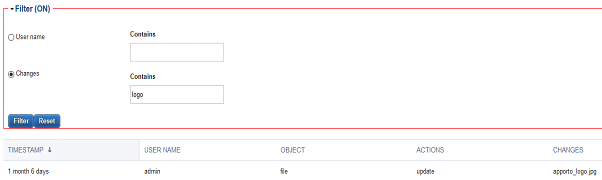 In the example below, we have filtered on Changes that contain the text string “logo”.