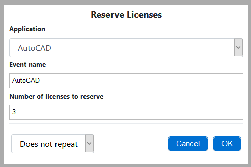 The ‘Reserve Licenses’ dialog box displays.