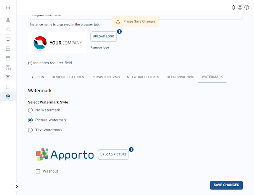 - Click save changes to apply your watermark configuration. The system will display a confirmation message once the update is complete.