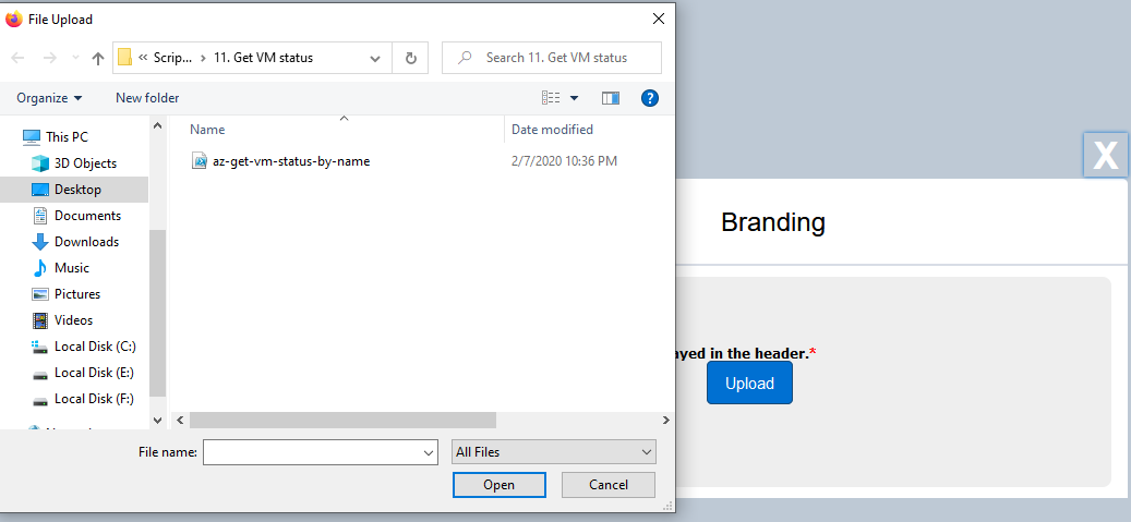 Select the logo file to upload and click Open