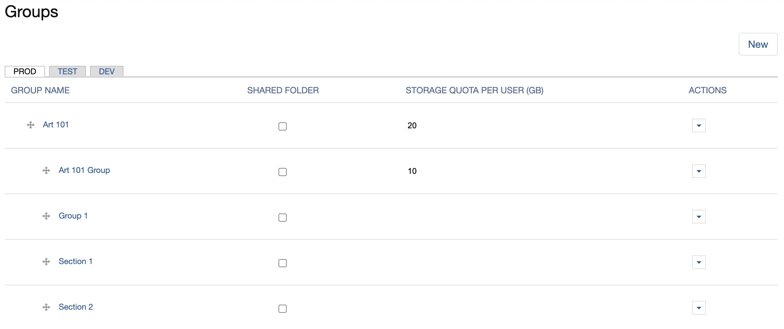 Locate the relevant group and click the associated ACTIONS down arrow.