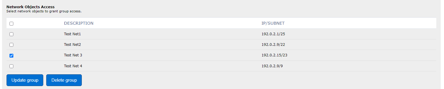 Check the boxes next to the relevant Network Objects to grant access.
