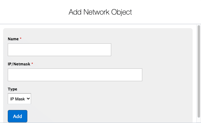 To add additional network objects, repeat the steps above. Saved network objects will appear as a checklist when you create or edit Groups .