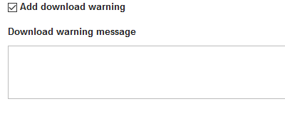 The screen refreshes to display the ‘Download warning message’ text box.