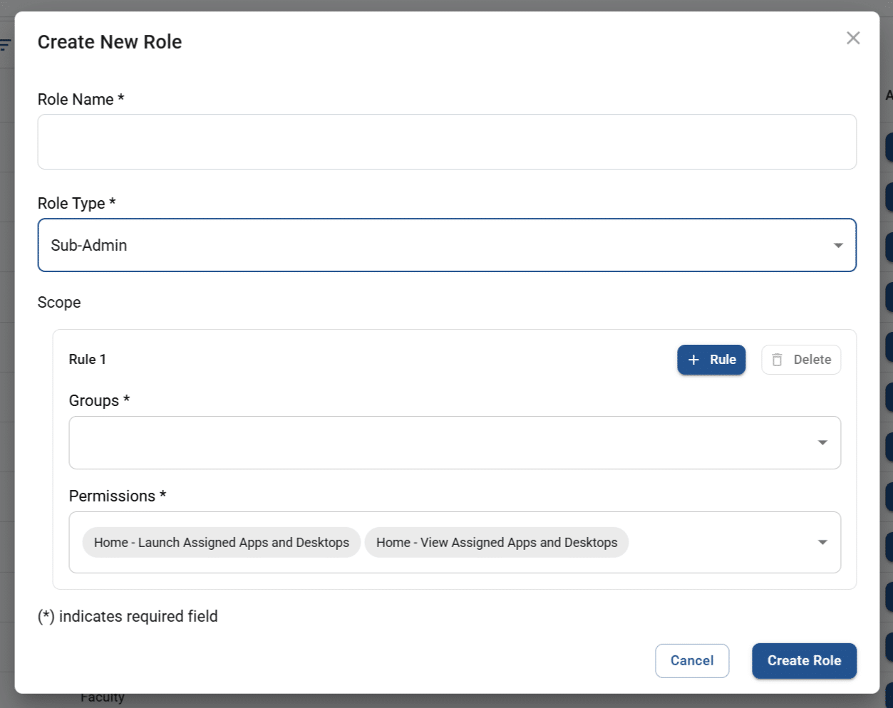- Select 1 or more user groups for the scope of the role.