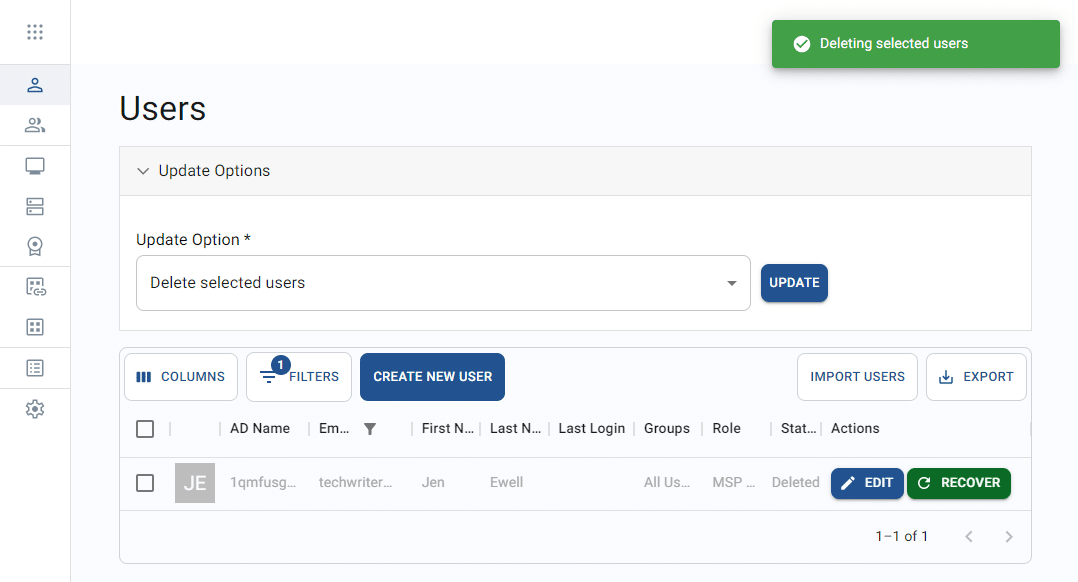 - Re-provision selected users – This will reactivate the selected users and restore login privileges.