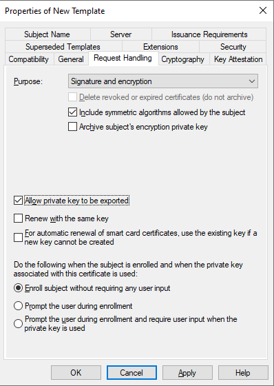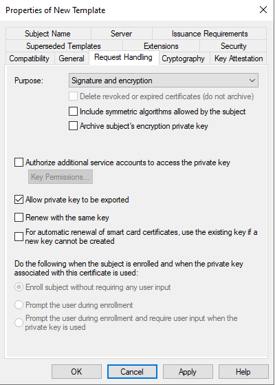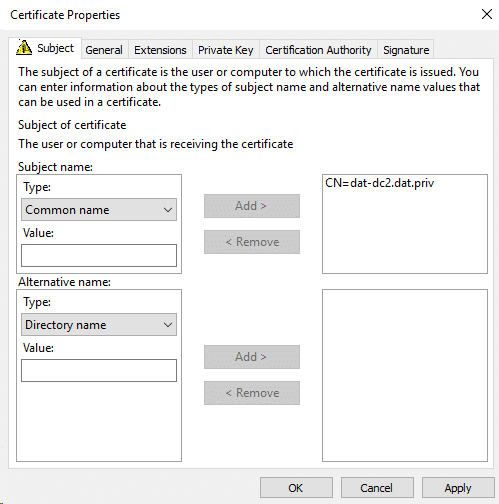 Note: If you have few root CA in your domain (you can check it by opening pkiview.msc – Manage AD Containers), you should check which CA you are going to use. When you are requesting a certificate, open the details of your certificate template and click on Properties, then go to the Certification Authority tab where you can select the necessary CA.