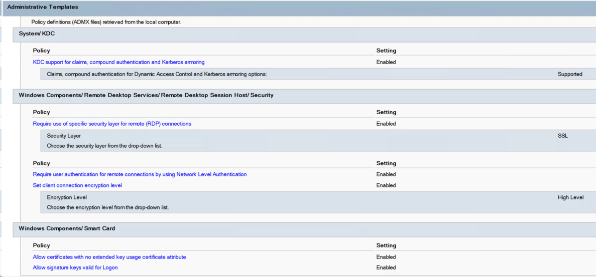 - Computer Configuration-Policies-Windows Settings-Security Settings-Local Policies/Security Options