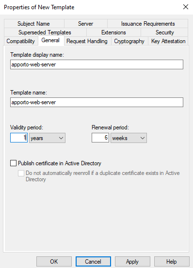 - Create a certificate template for the Web application.