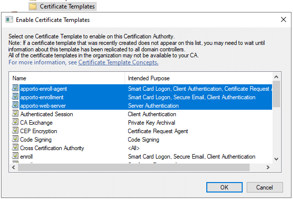 - Leave defaults until Request Certificates. Select apporto-enroll-agent template and click Enroll.