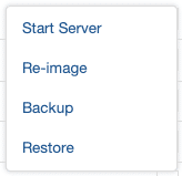 To re-image a production VM (identified by names ending in 001, 002, etc.), identify the desired VM and select Re-image from the ACTIONS menu.