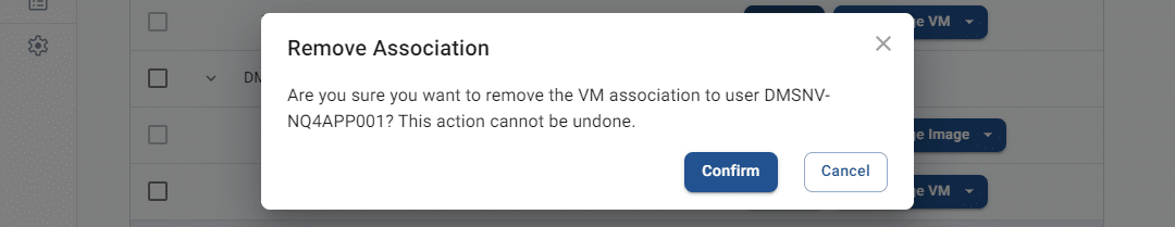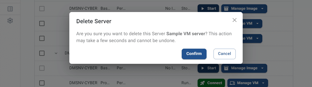 - Click confirm to complete deletion. The VM will no longer appear in the list.