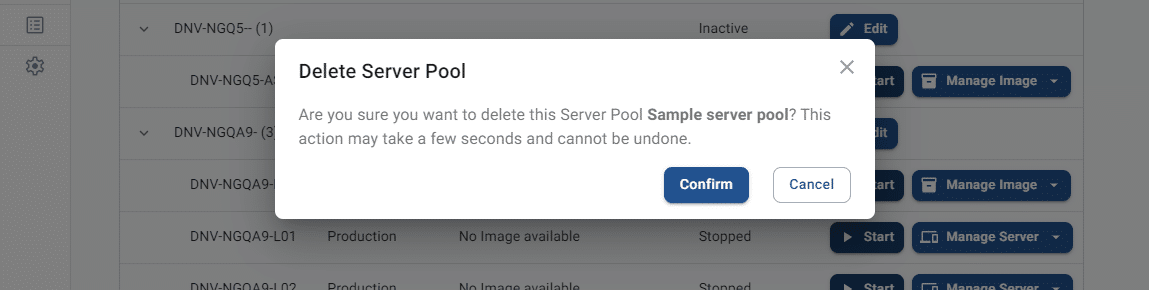 - Click confirm to complete removal of the server pool. This will remove the server pool from the list.