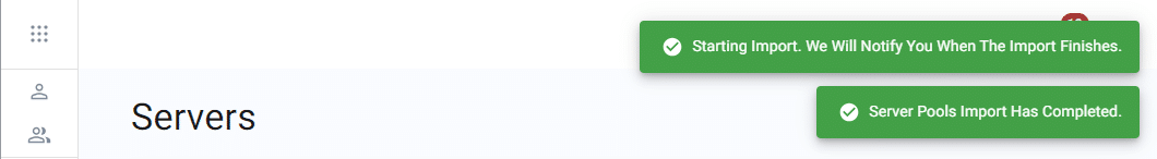 - After the import has successfully completed, any new server pools or servers will appear in the list. Some configuration values may be missing.