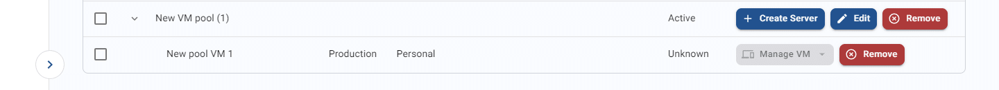 | Virtual machine | String | Display only | Name of the server (VM) pool from which you triggered server creation |