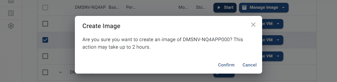 - Click confirm to complete image creation. The process may take up to 2 hours.