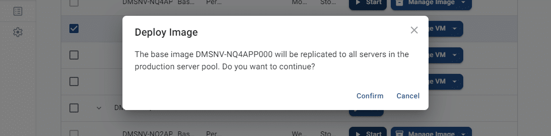 - Click confirm to complete image deployment. The image will deploy through all related servers, 5 servers at a time.