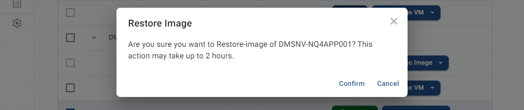 - Click confirm to restore the most recent image backup. The process may take up to 2 hours.