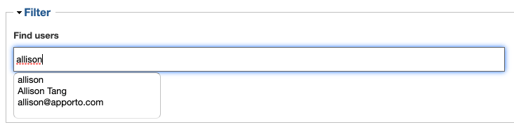 Enter a search term (eg. “Allison” or “Faculty”). The system will attempt to match your search term with user’s names, emails, roles, groups, etc.