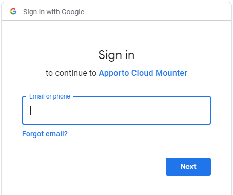Follow the on-screen prompts to enter your credentials and allow access to the Cloud Mounter.