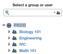 Use the search function or expand arrows to locate the relevant group or user.
