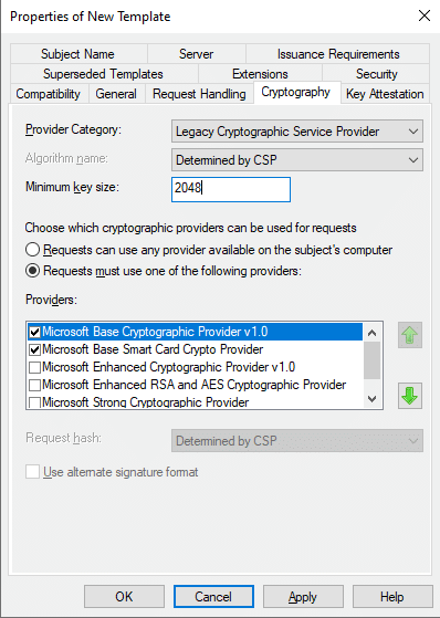 Note: If you have few root CA in your domain (you can check it by opening pkiview.msc – Manage AD Containers), you should check which CA you are going to use. When you are requesting a certificate, open the details of your certificate template and click on Properties, then go to the Certification Authority tab where you can select the necessary CA.